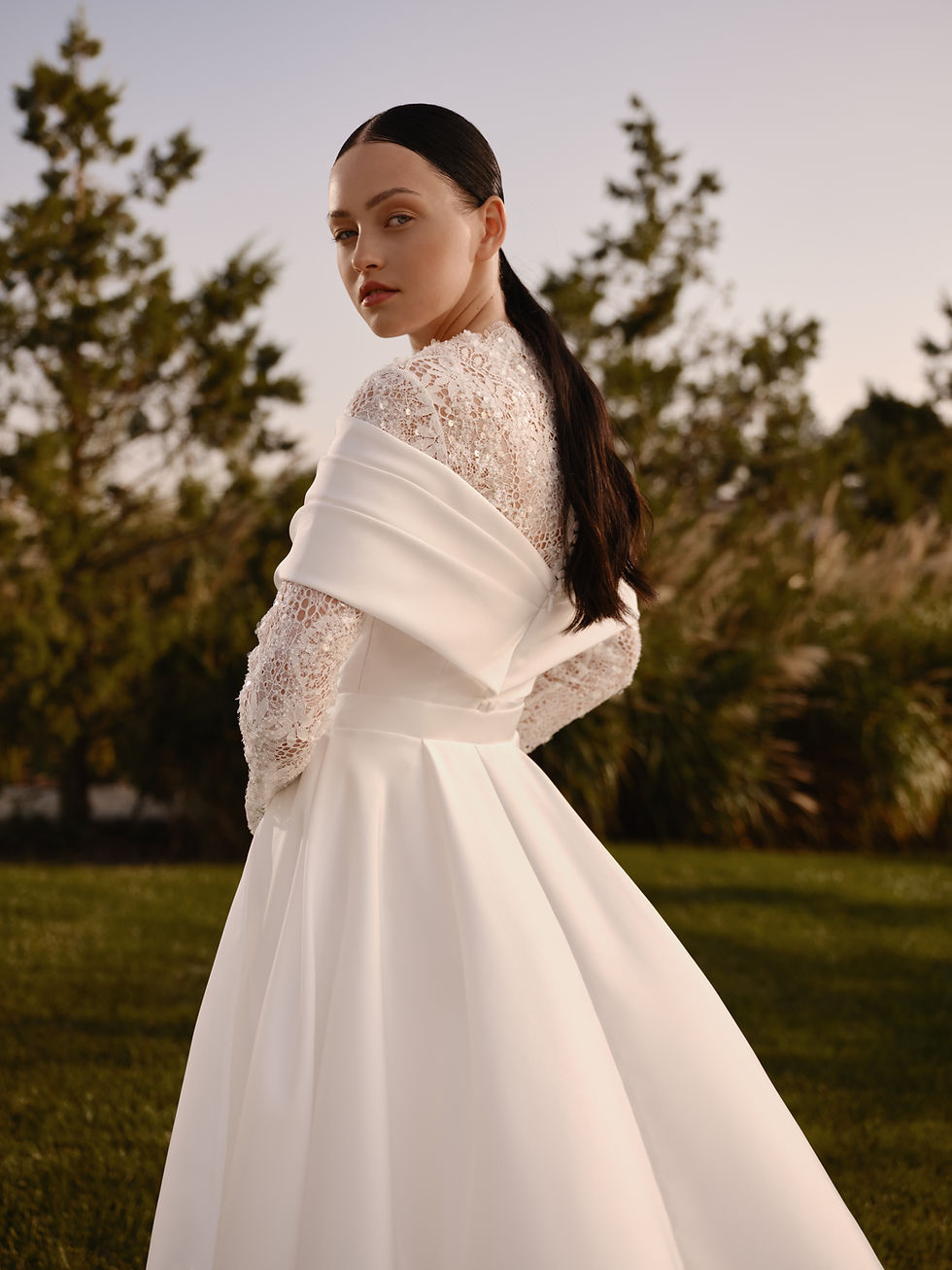 L'Emira by Vittoria Soltero is a bridal line that redefines elegance, where each gown becomes a masterpiece of unparalleled artistry. Crafted from the finest fabrics and adorned with delicate lace, this collection is not just beautiful — it evokes a sense of luxury, offering the bride an unmatched feeling of elegance.